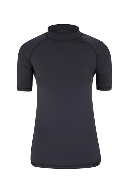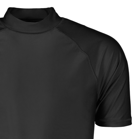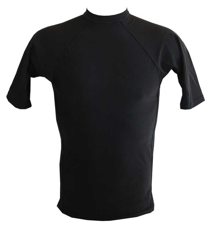 Active rash vestCrew neckShort raglan sleevesUnder arm panels/stitchedFittedNylon and elastane